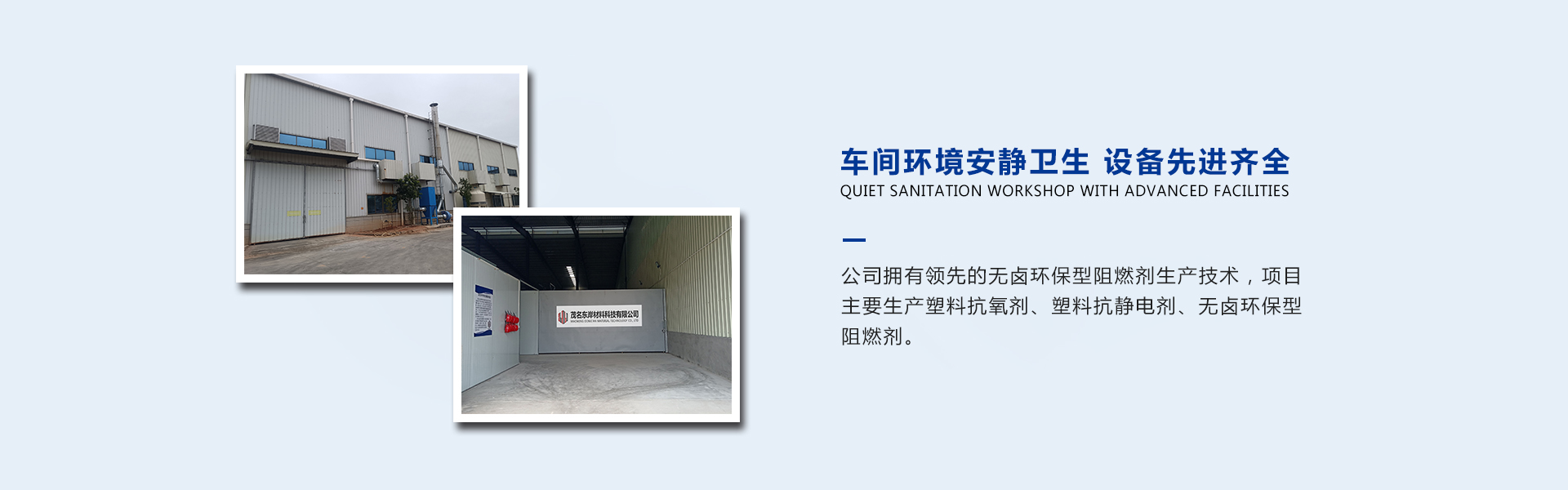 茂名東岸材料科技有限公司是一家主要從事抗靜電劑、無鹵環(huán)保型阻燃劑、聚烯烴成核劑等新材料研發(fā)生產(chǎn)的高科技技術公司,是由無鹵環(huán)保型阻燃劑研發(fā)者創(chuàng)立,核心技術團隊有3位博士,是中國重要的無鹵環(huán)保型阻燃新材料生產(chǎn)企業(yè)之一。公司擁有無鹵環(huán)保型阻燃劑生產(chǎn)技術,項目主要生產(chǎn)塑料抗氧劑、塑料抗靜電劑、無鹵環(huán)保型阻燃劑。